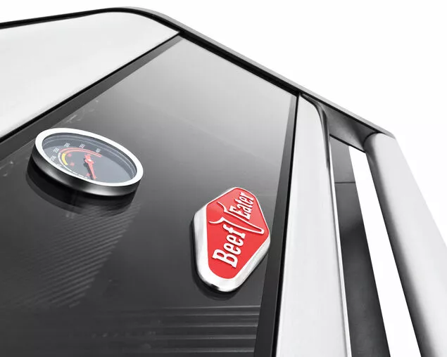 Keep an eye on what’s cooking without lifting the lid. Maintain heat using the built in temperature gauge or peer through the full width glass viewing window to check how those sausages or brisket are doing.