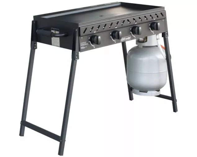 Ideal for sporting clubs and social group events, the Downunder 4 Burner Hotplate is perfect when entertaining outdoors. Powered by a flame thrower ignition LPG, you’ll be able to create delicious steaks and snags on the solid steel hotplate surface that measures 800mm x 490mm. The actual barbeque dimensions are 537mm x 1046mm x 794mm. With padded handles for easy carrying, simply fold up the legs to fit the BBQ in the boot of your car.