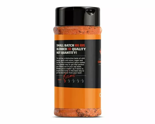 Kosmos Cow Cover Rub has a mixture of chilli pepper, garlic and onion which is paired perfectly with all types of red meat for everyone to enjoy.Â