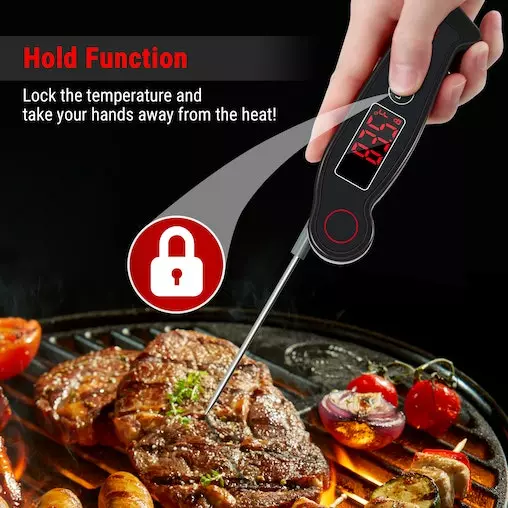 Ultra fast & Highly accurate: Instant read meat thermometer features a precise thermocouple sensor get speedy readings in 2-3 seconds, accurate to ±0.9℉(±0.5°C);