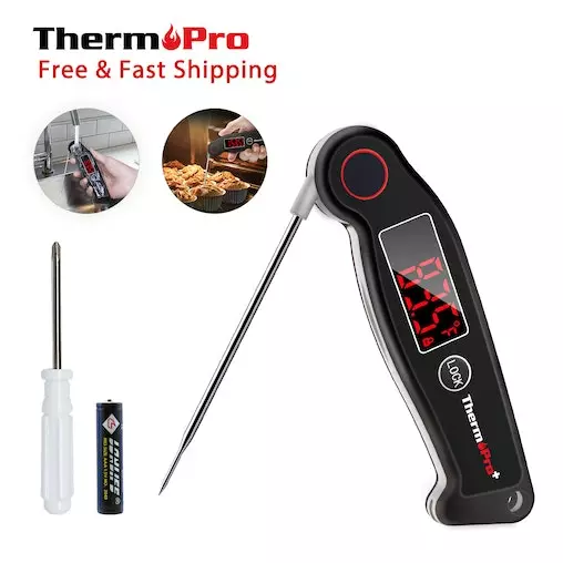 Start delivering properly cooked food to the table by using a food temperature thermometer. The ThermoPro TP19W waterproof electric meat thermometer is the ultimate choice for ultra fast measurements to determine if your food is safe for consumption. Using it’s ultra-sensitive and fast thermocouple sensor, this cooking thermometer with probe can deliver the fastest readouts on the market in just 2-3 seconds.