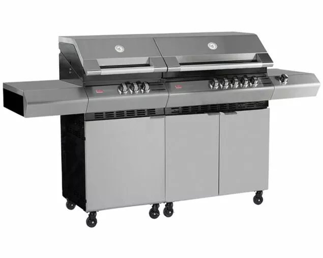 Ideal for your backyard, outdoor deck, patio, poolside outdoor entertainment area or outdoor room, this unit has plenty of power and capacity if you need to cater for extra visitors. The sturdy cart has internal gas cylinder storage, double skin cupboard hinged doors and super strong shelves.
